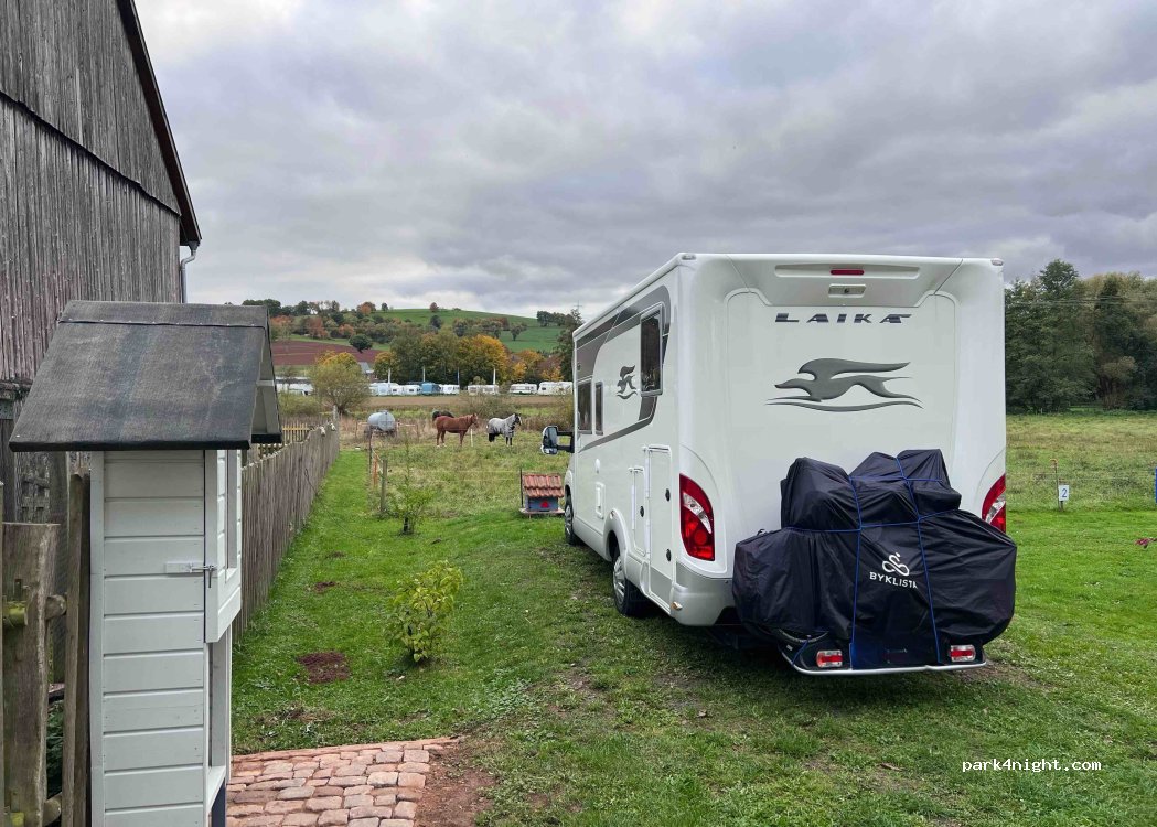 Busanbindung nach Bad Hersfeld und Alsfeld bestehen. Neben dem Platz leben drei Hühner ein Frühstücksei gibt es gratis, Äpfel dürfen gepflückt werden.