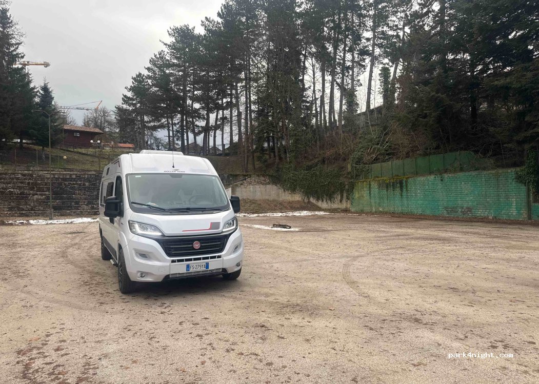 Ampio parcheggio camper/auto. Vicino al centro ma con nessun servizio.