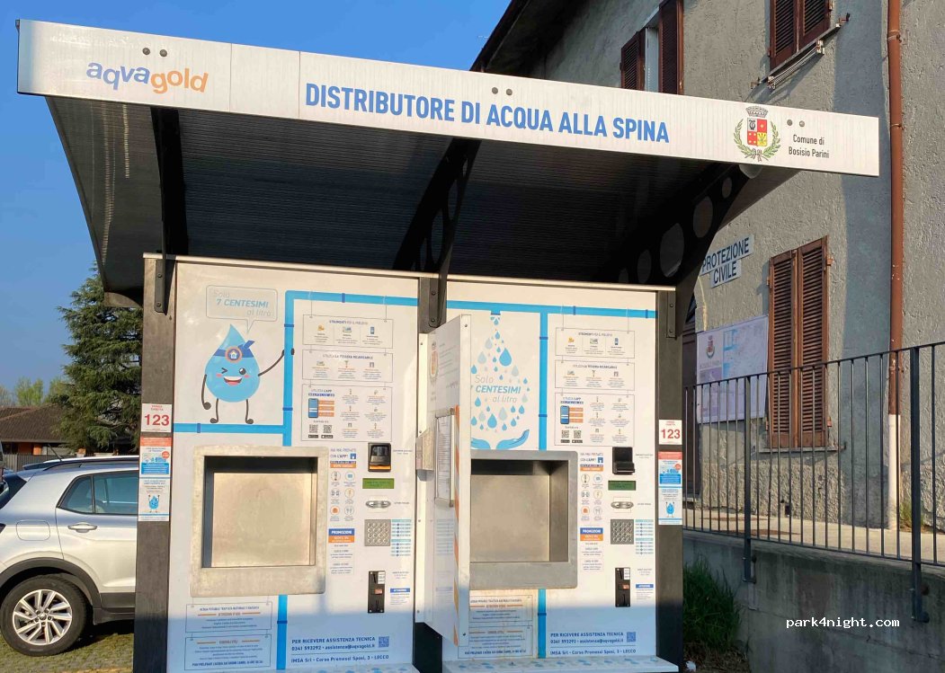 Aparcamiento de pago cerca de la nueva plaza del lago donde hay baños y duchas al aire libre cerca del lago.