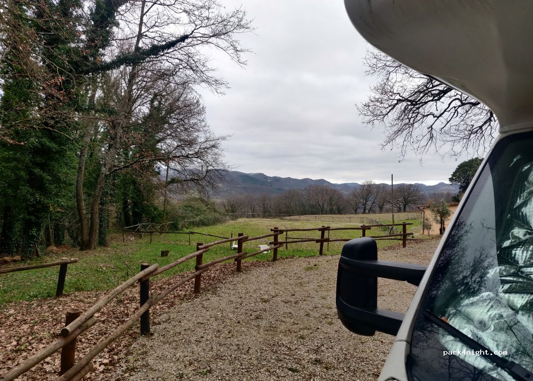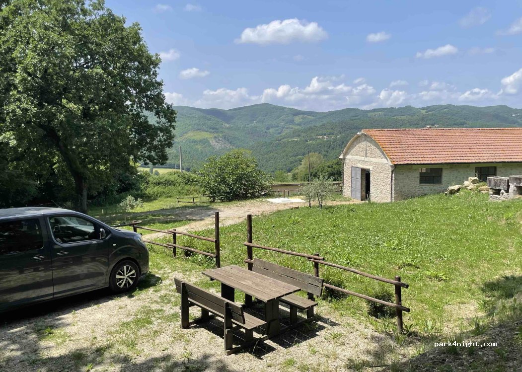 Petite aire de camping-car de la ferme « La Cerqua », immergée dans la verdure de la forêt de Pietralunga. Emplacements situés à l'ombre de chênes centenaires à proximité de la ferme. Différents services et activités disponibles. Pour plus d'informations, visitez le site Internet
