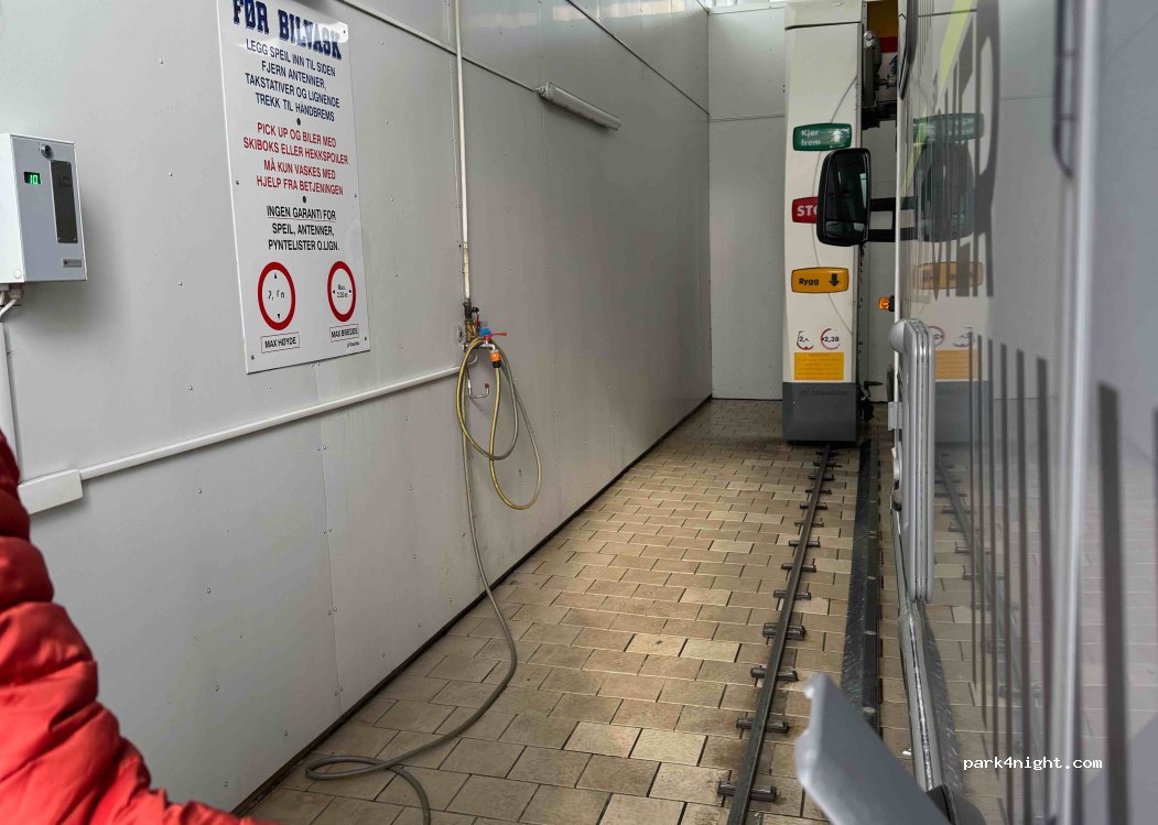 Hier kann man auch Adblue tanken und kriegt Wasser, auch im Winter, für 100 NOK. Außerdem ist eine Werkstatt nebenan und ein Supermarkt.