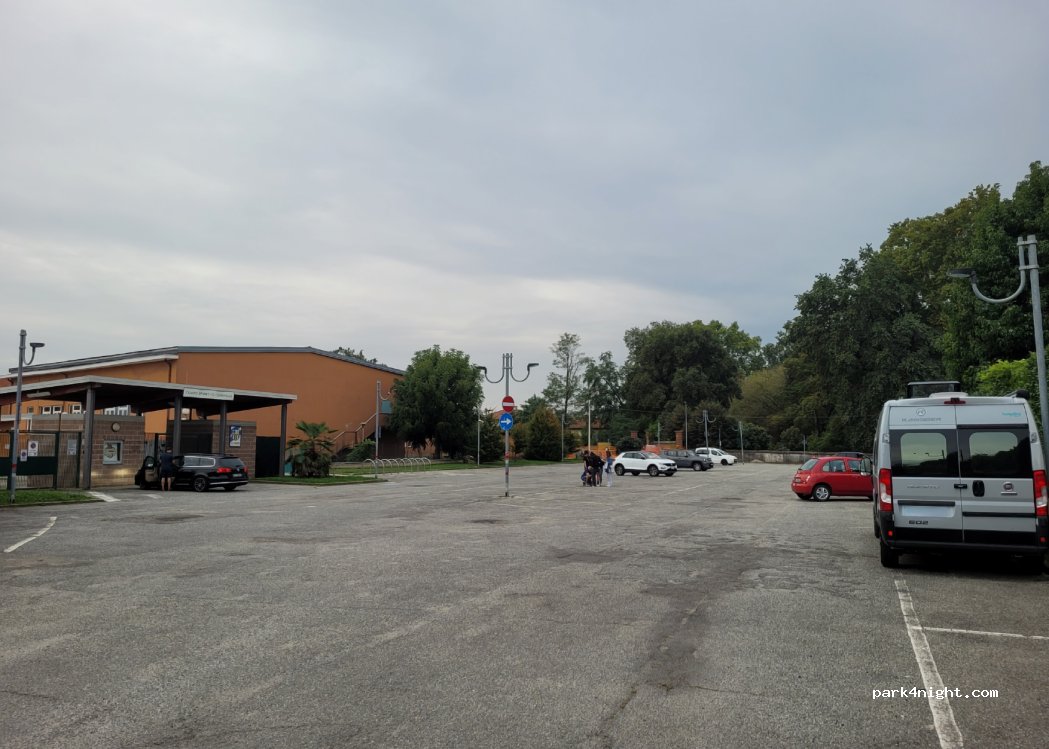 Parcheggio senza servizi, vicino un complesso sportivo, molto tranquillo , abbiamo passato una notte in totale silenzio.