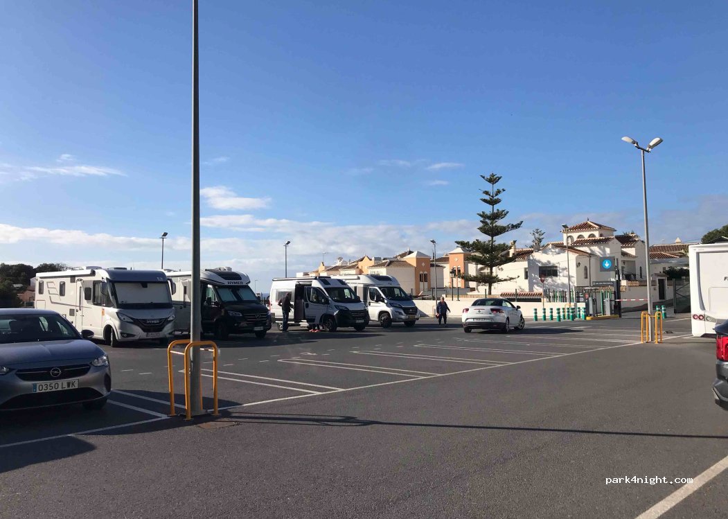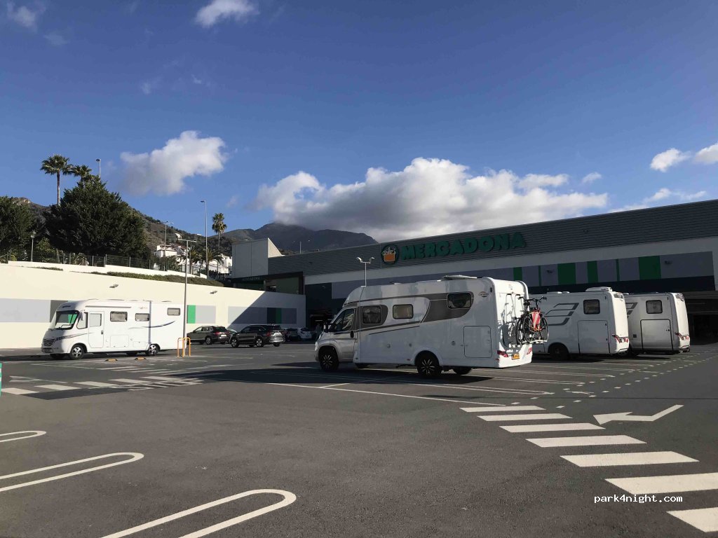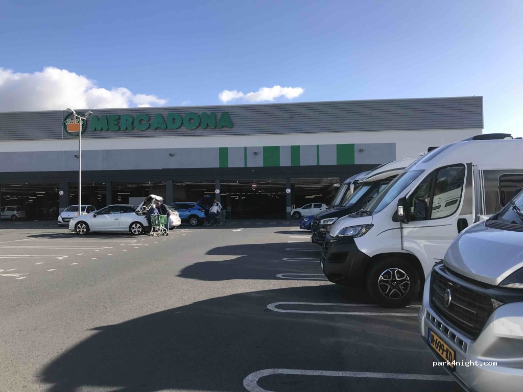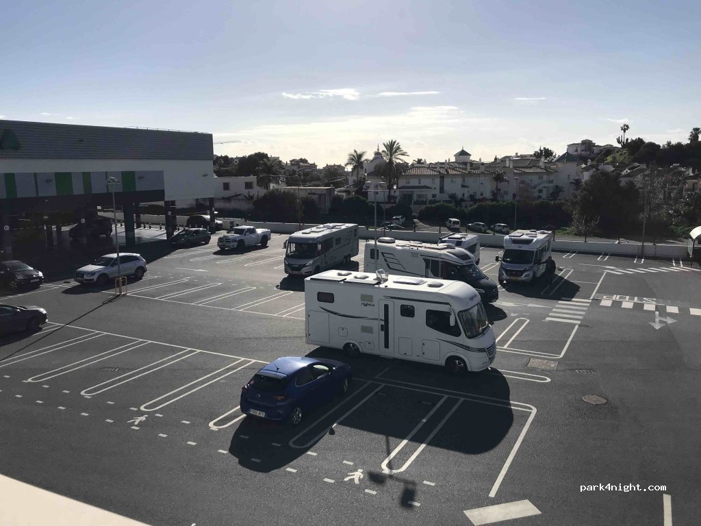 Amplio parking de pago en supermercado para autocaravanas de hasta 8 m y sin límite de altura