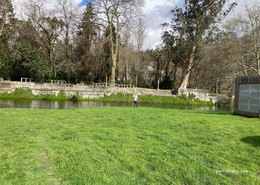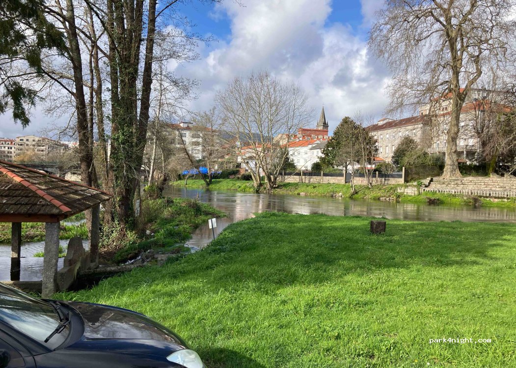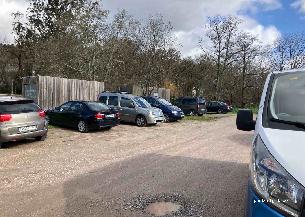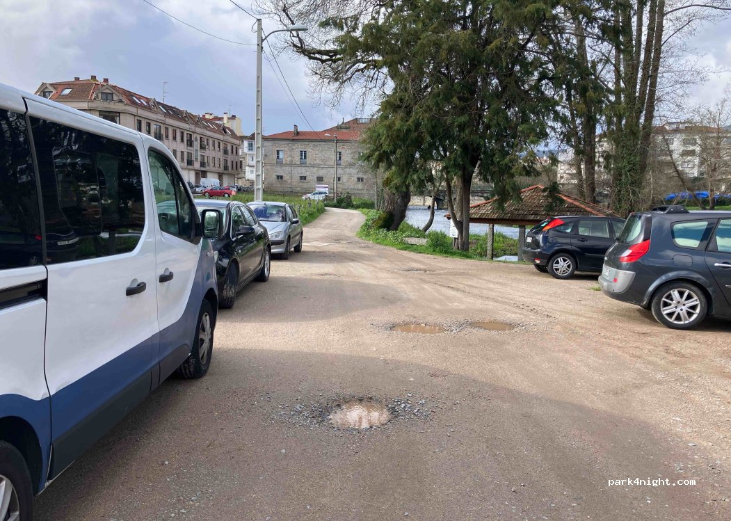 Dirt parking next to the river. Quiet and next to the village.
