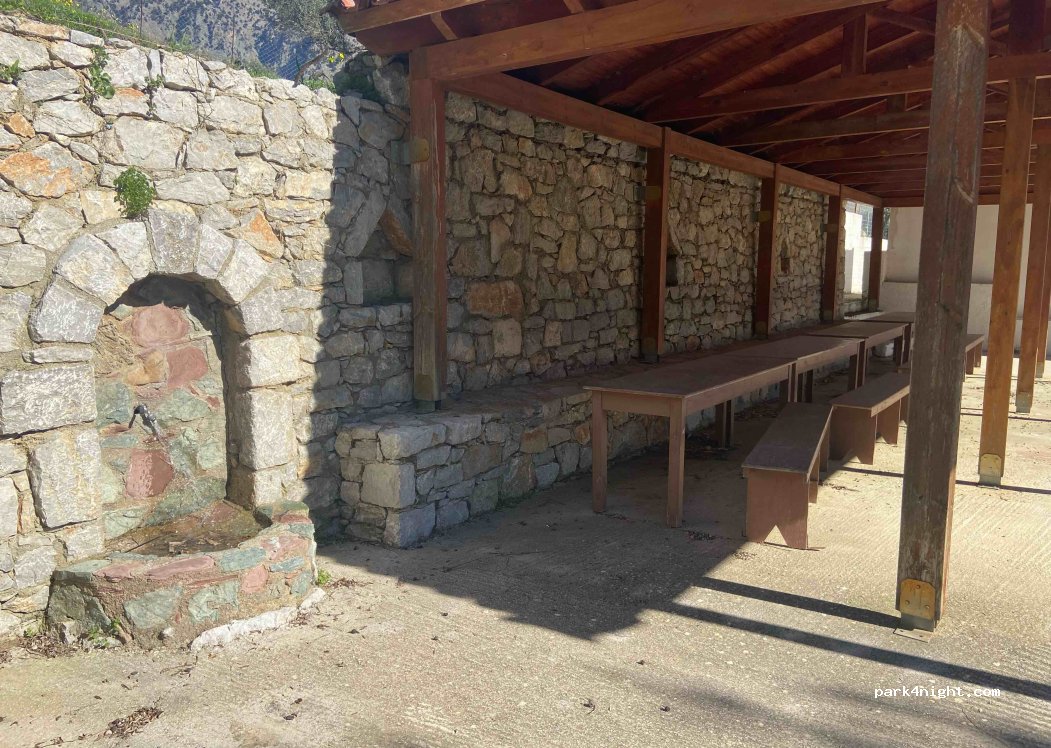 Aparcamiento al lado de una iglesia. Acceso por carretera asfaltada. El grifo tiene rosca. Puedes aparcar cerca de él. Aquí hay mesas y bancos para comer. Hay dos grandes zonas de barbacoa. Aquí se llevan a cabo celebraciones. Lamentablemente el baño estaba cerrado.