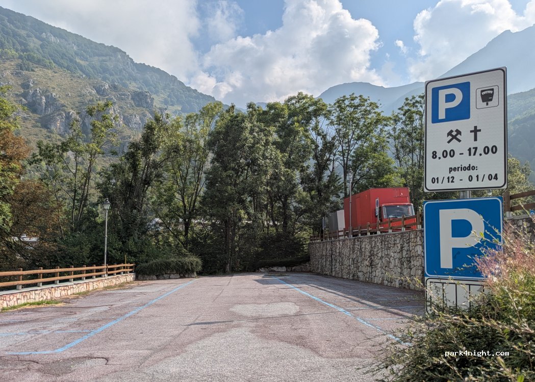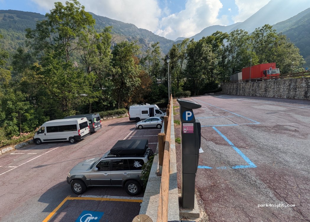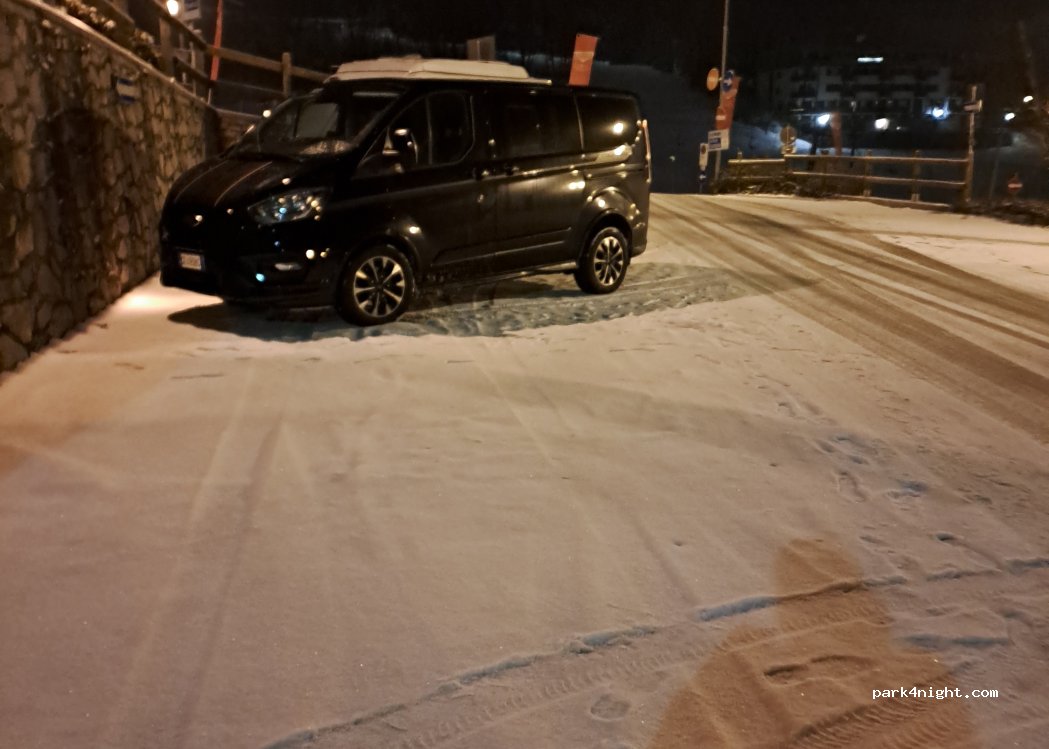 Parking for the ski area "maneggio" in the upper part does not need to pay, be careful to avoid bus parking or blue lines during the winter season. Flat area ideal for stopping with van. Quiet and well lit without becoming annoying.