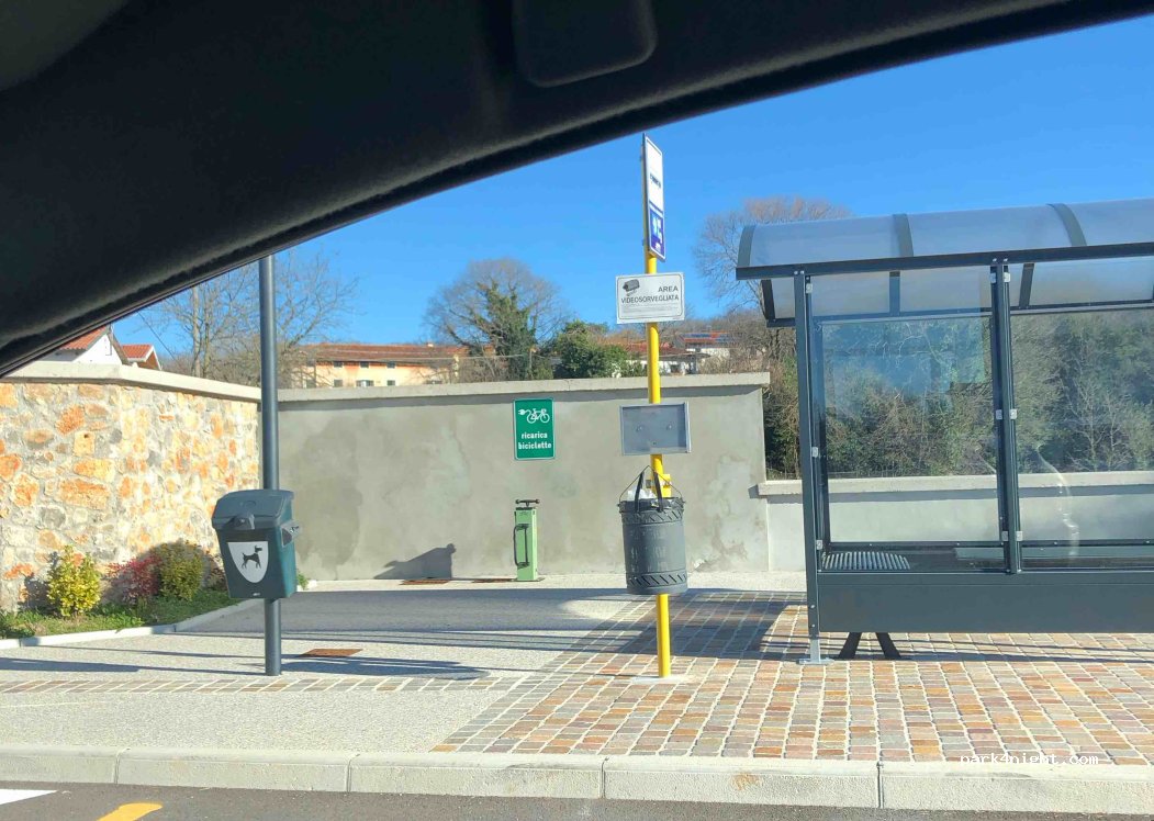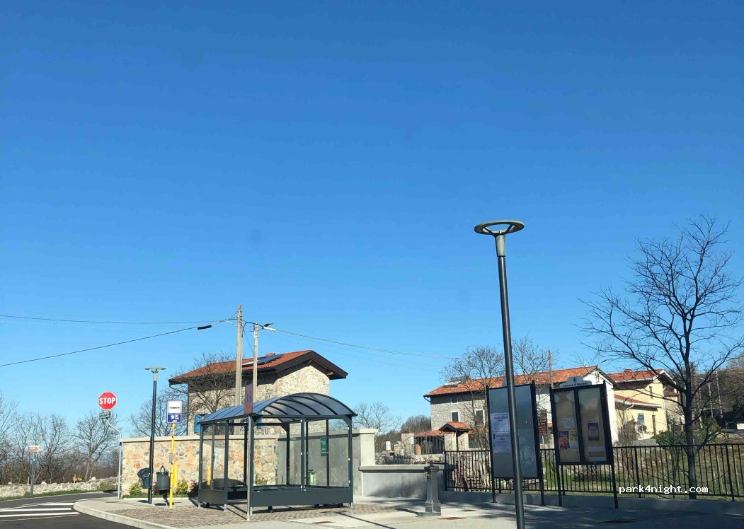 Small square where you can park even at night with a fountain for drinking water.. bicycle maintenance point, restaurant nearby open March-December decent.. and starting point for excursions to Monte San Michele with a museum where the battles of the First World War took place.