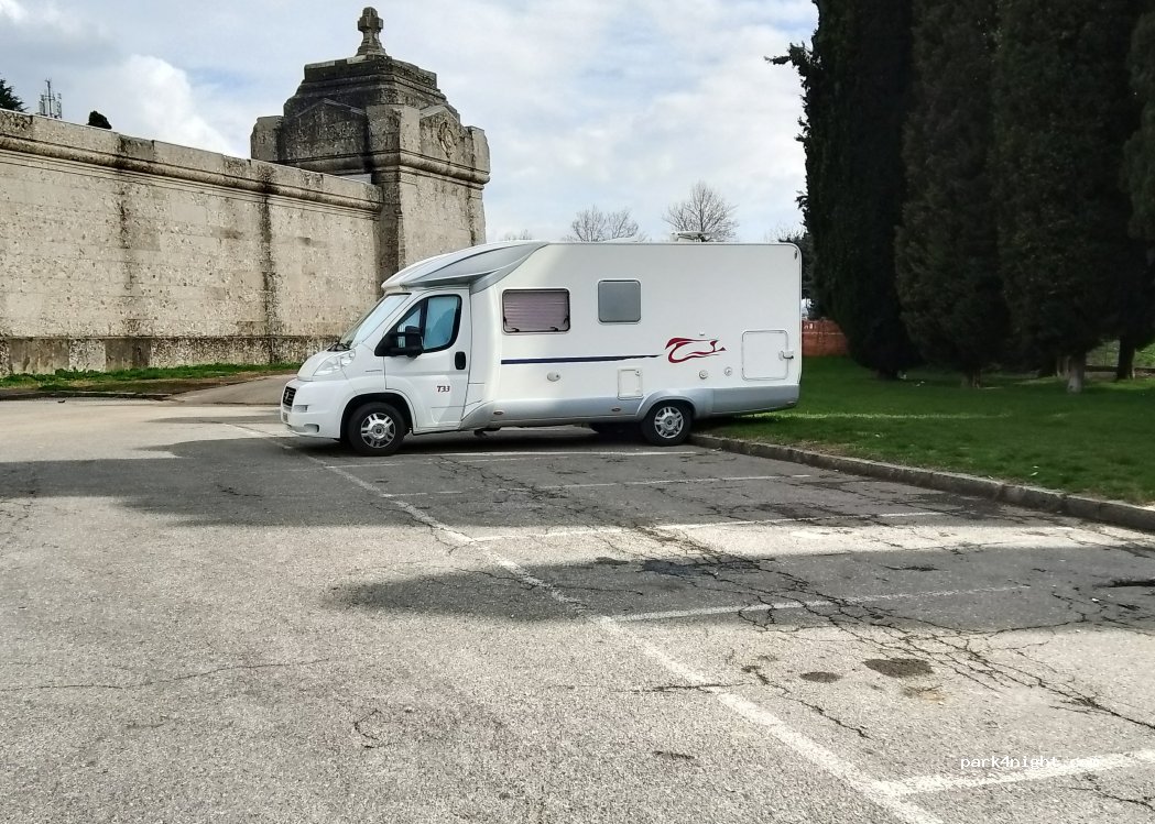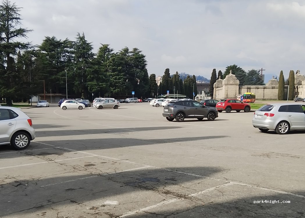 Piazzale del cimitero misto a macchine ma molto grande. Senza problemi e pochissimo rumore. Comodo per visitare la città. A 10 minuti c'è la stazione ferroviaria dove in mezz'ora si arriva a Milano e in un'ora si arriva a Verona.