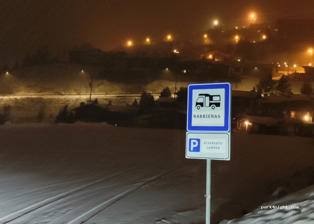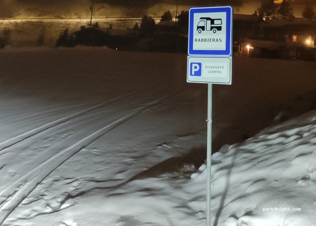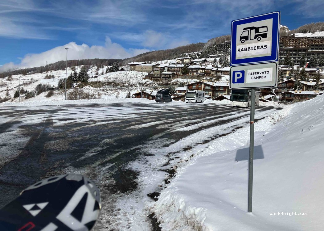 Parcheggio Rabbieras 3 riservato ai camper, in piano ma senza alcun servizio.