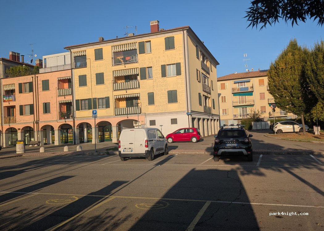 Petit parking dans un quartier résidentiel, très calme, aire de jeux à proximité. Le parking se trouve dans le village de Calcara, à environ 5 minutes du péage de l'autoroute.