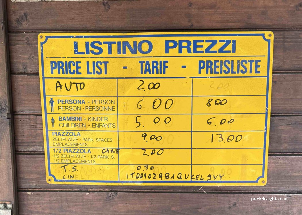 Camping Ras, à priori ! En effet, après notre installation, nous nous faisions un plaisir de déguster un Vitello Tonato. On ne distinguait pas le veau sec sous la '' gâchée'' de mayonnaise infustrielle. Nous avons quitté la table et décidé de décamper. Cet établissement ne mérite pas de travailler pour le tourisme. A éviter ! Nous ne comprenons pas cette flatteuse moyenne sur Park 4 night.