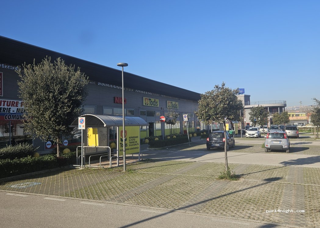 Parcheggio supermercato Todis, solo per la notte, tranquillo