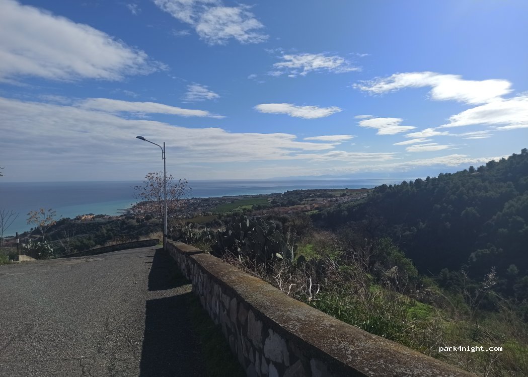 Asphalted parking lot with slight, ignorable slopes below the historic center. Poor view of the sea. I passed by here by chance. It seems to be a very quiet place