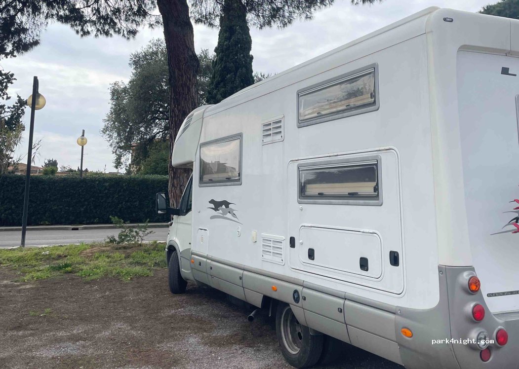 Piccolo parcheggio a Sabaudia, poco lontano dal centro, abbastanza pianeggiante. Capienza uno o due camper.