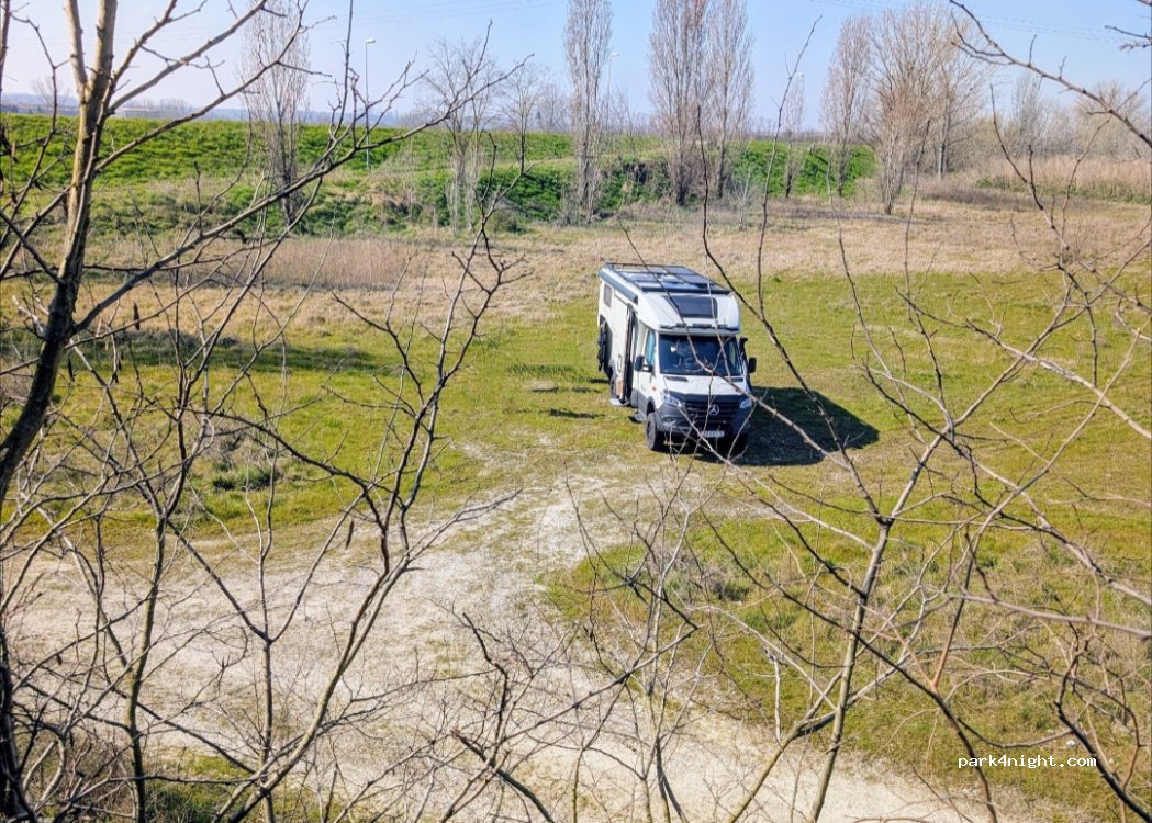 Sehr verlassen, gute Zufahrt, es gibt zwei Ebenen, wir standen unten, genug Platz, schöne Aussicht, ein bisschen hört man die Autos von der Schnellstraße, die in Sichtweite ist, zum Übernachten passt es.