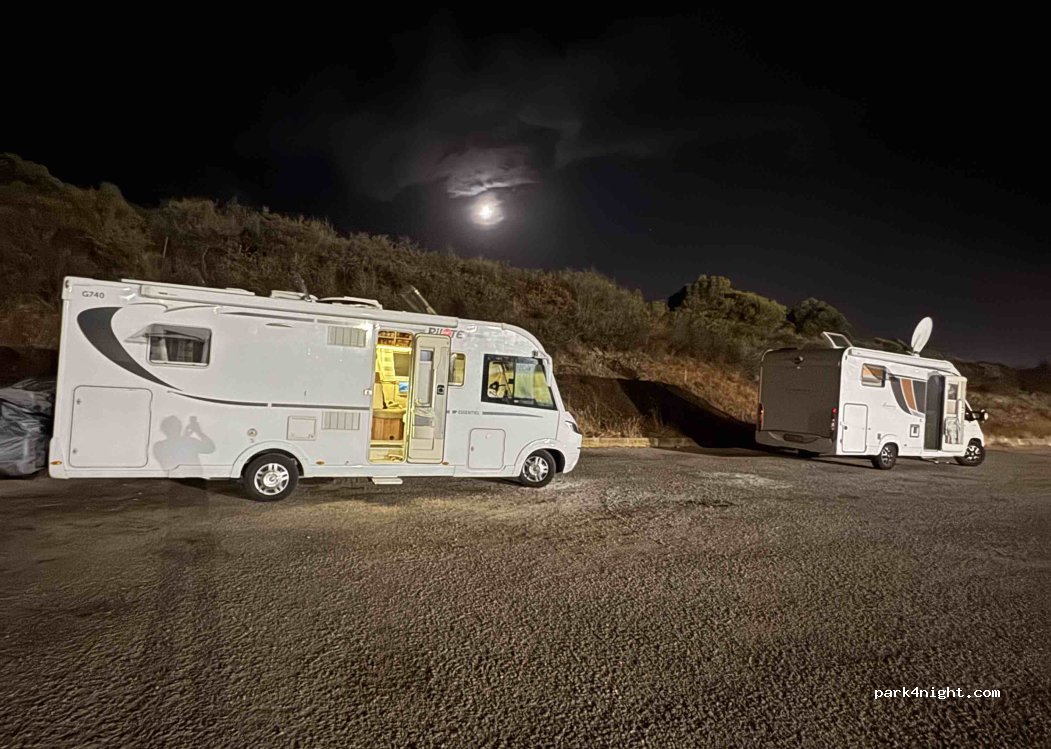 Parking in front of Tecnomat, overlooking the port. No restrictions for campers and it is close to the entrance of the sacred well Sa Testa