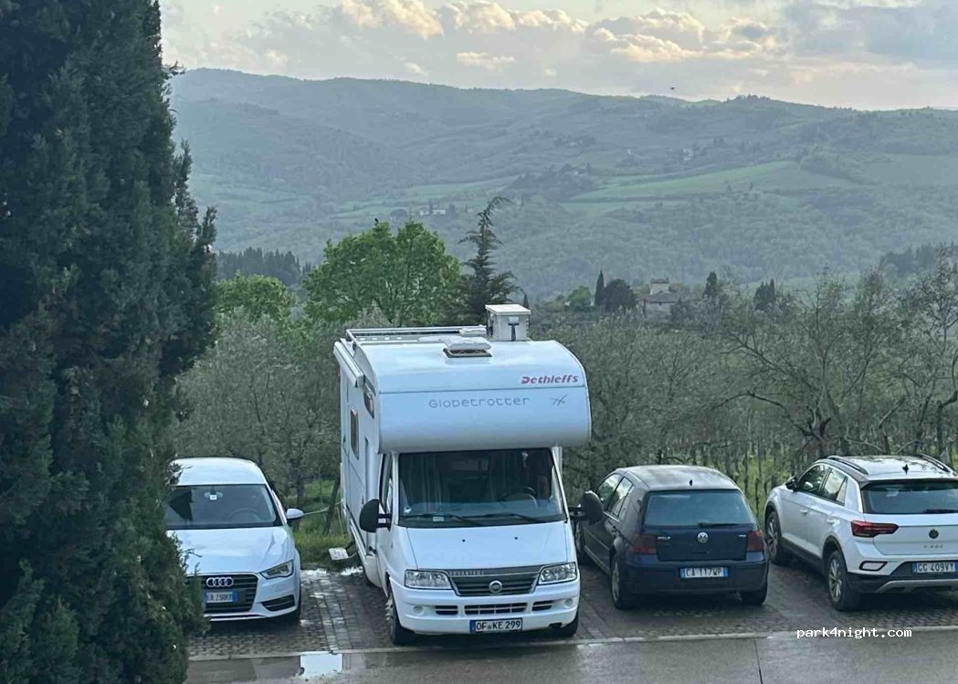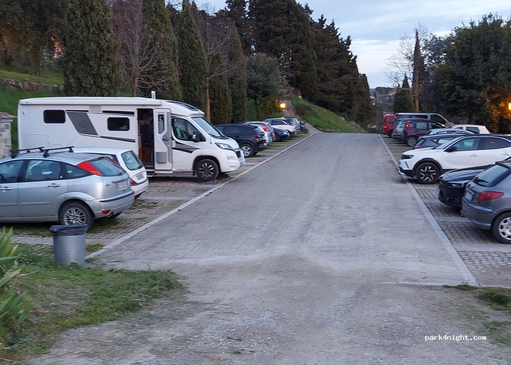 C'è un altro posto auto sopra l'attuale parcheggio per camper. I parcheggi hanno la stessa lunghezza di un'auto, ma circa 6-7 di essi sono adatti a consentire al camper di sporgere posteriormente, a condizione che il passo sia compreso nell'intervallo di quello di un'auto.