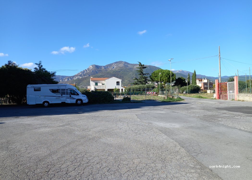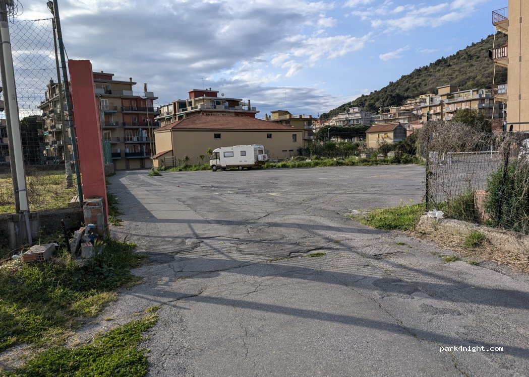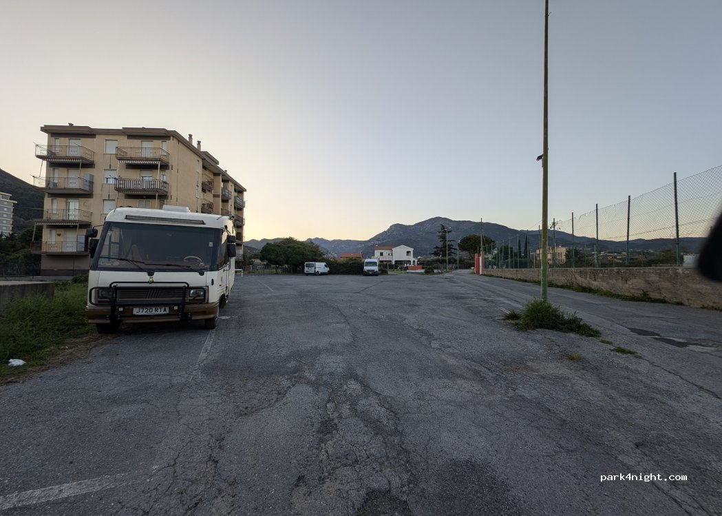 Cette aire de stationnement est simple et surplombée par des appartements, mais elle semble sûre et n'est pas située à proximité d'une route principale. C'est une option beaucoup plus calme que le parking restreint situé à 30 mètres, qui semblait très fréquenté.