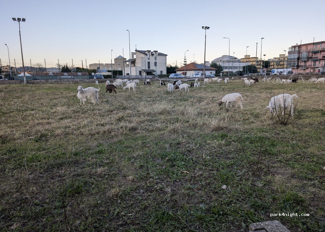 This is a parking area next to the 2.2m restricted parking area already on P4N. But this parking area has no barrier or restrictions. This is opposite the restricted car park separated by a square grassed area which might have been a football pitch at one stage but was at the time being used to graze goats which was super cute