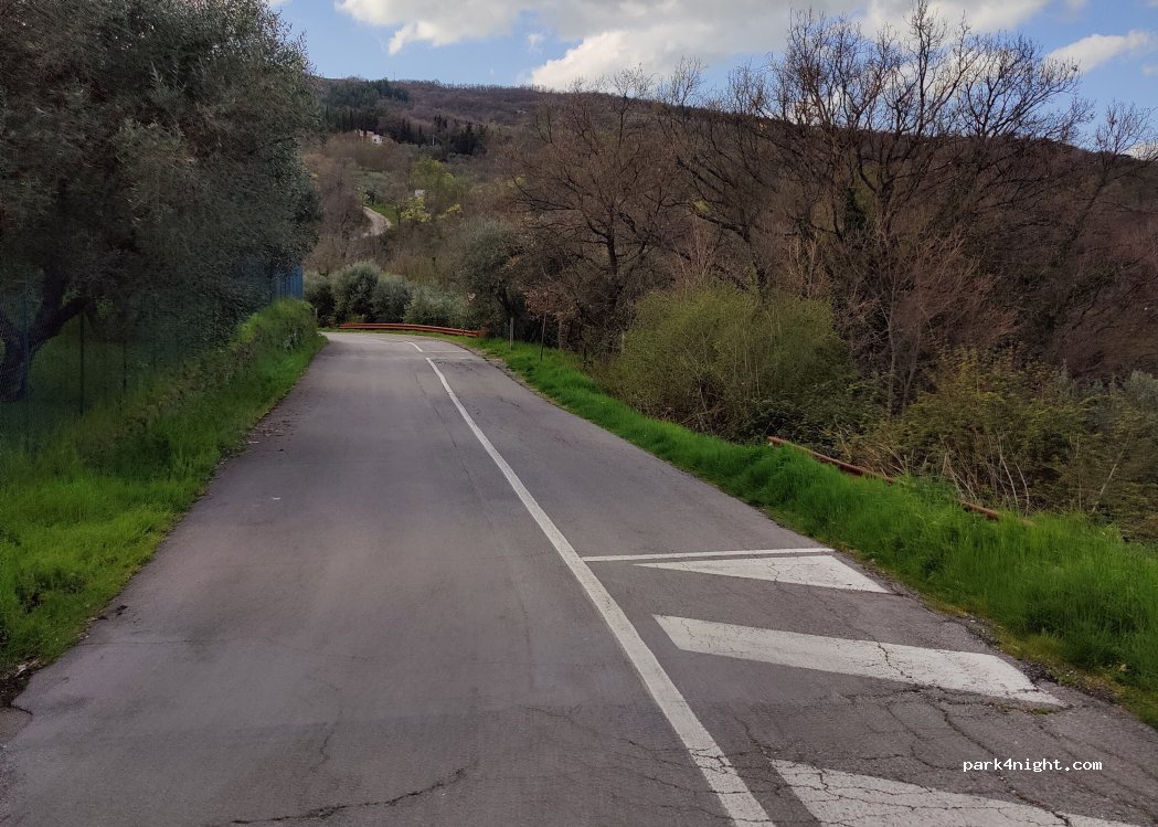 ho passato 3 notti qua, proprio vicino al parco con la fonte ed i bagni e our essendoci il divieto per sosta camper e van non ho avuto problemi. i parcheggi sono pianeggianti ed a linee bianche quindi gratis, molto meglio rispetto a 50 metri più su dove sino blu ed in discesa ci tornerò sicuro