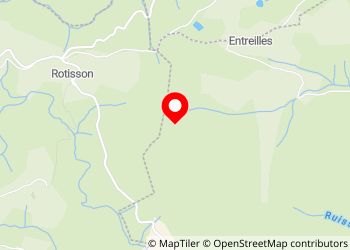 Not far from the wind turbines whose murmur can be heard, next to a water reservoir, in the forest but well-lit, wide gravel road. Access from the Col de Rotisson. No view.