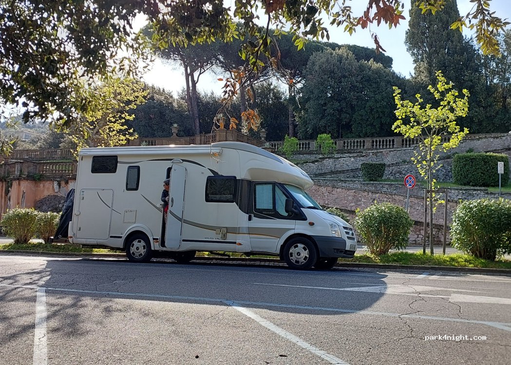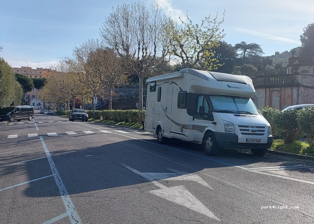 Poco trafficata e una delle poche strade pianeggianti della città. Il camper è leggermente in pendenza a causa della conformazione della strada. A pagamento durante il giorno e gratuito dalle 20:00 alle 8:00.