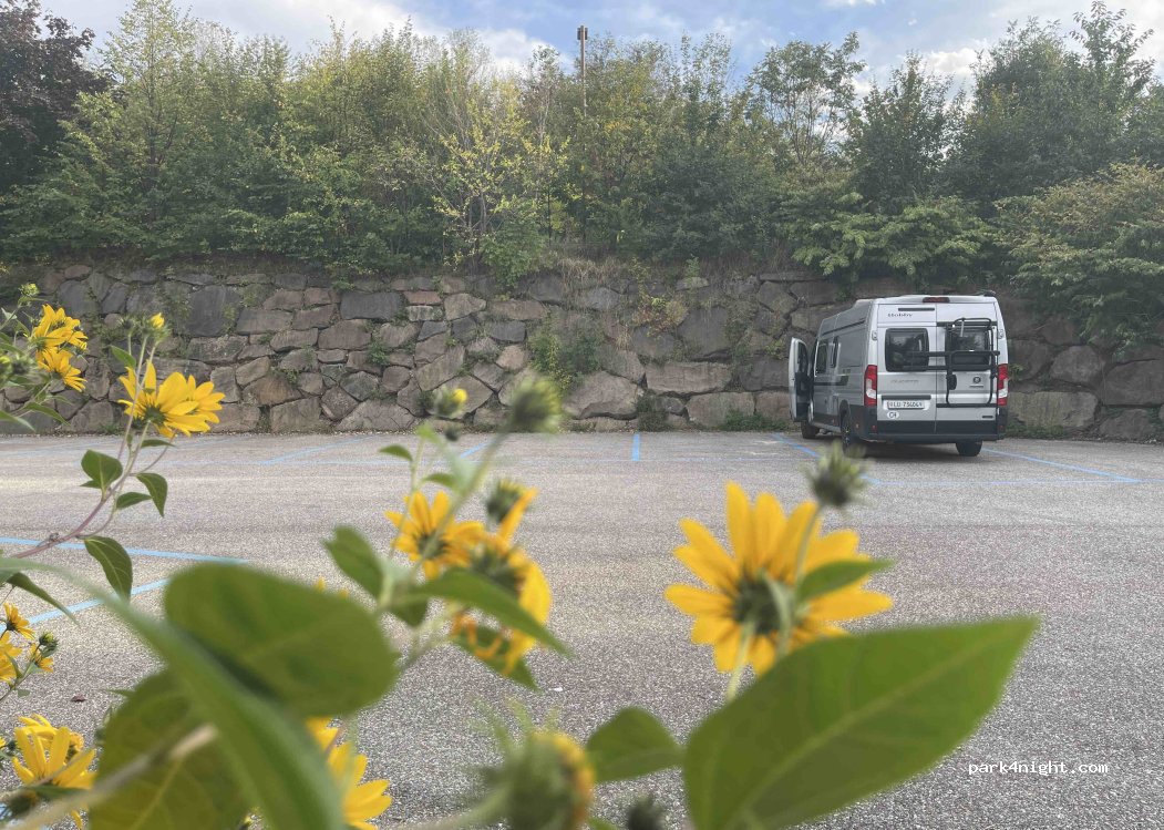 Schöner und ruhiger Platz, mehrere davon für Wohnmobile. Intransparent allerdings die Bezahlung (egal ob per App oder Kreditkarte): 4 € bis 04.00 Uhr, egal wann man ankommt, Verlängerung nicht möglich. Kann sein, dass es ein Systemfehler ist, Böses möchte ich nicht unterstellen. Wir haben uns mit dem Betreiber (Mobility Hub) in Verbindung gesetzt, dann wurde es geregelt, ansonsten sehr teuer.