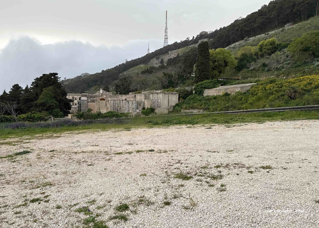 Cemetery parking lot, therefore very quiet, possible starting point for a hike to go around Erice by going up the Torretta Pepoli.