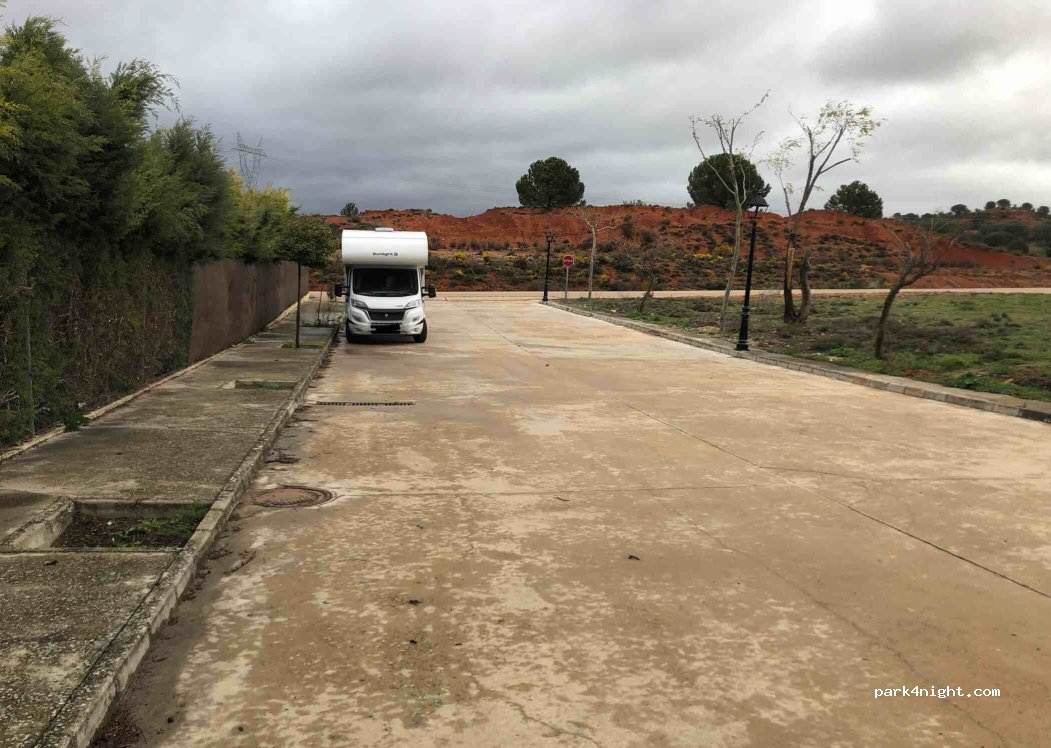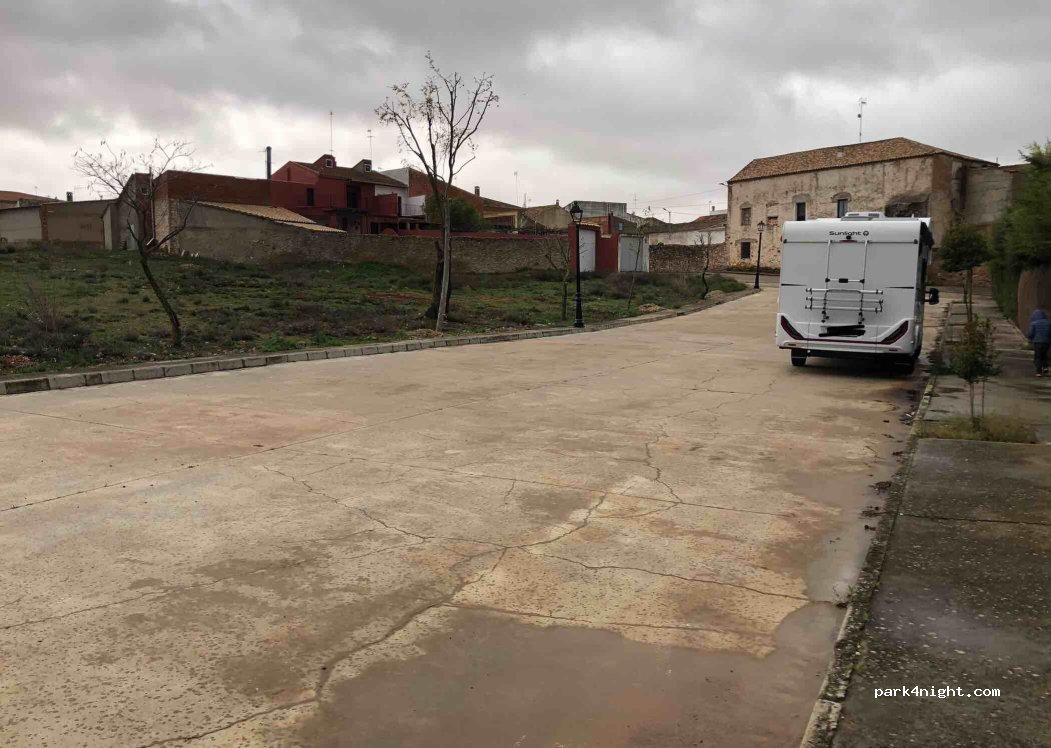 Calle si nada de tráfico al lado de la piscina municipal, donde es posible aparcar la autocaravana. Permite pasar la noche tranquilo. Al lado hay un parque infantil. Bien nivelado y sin ruido para dormir.