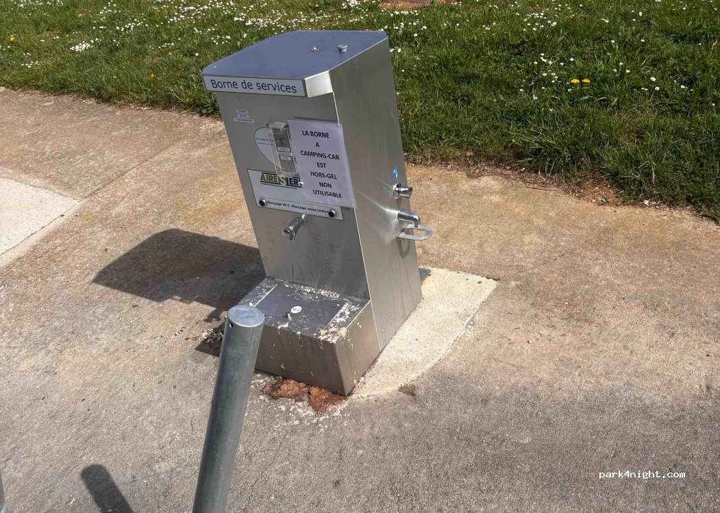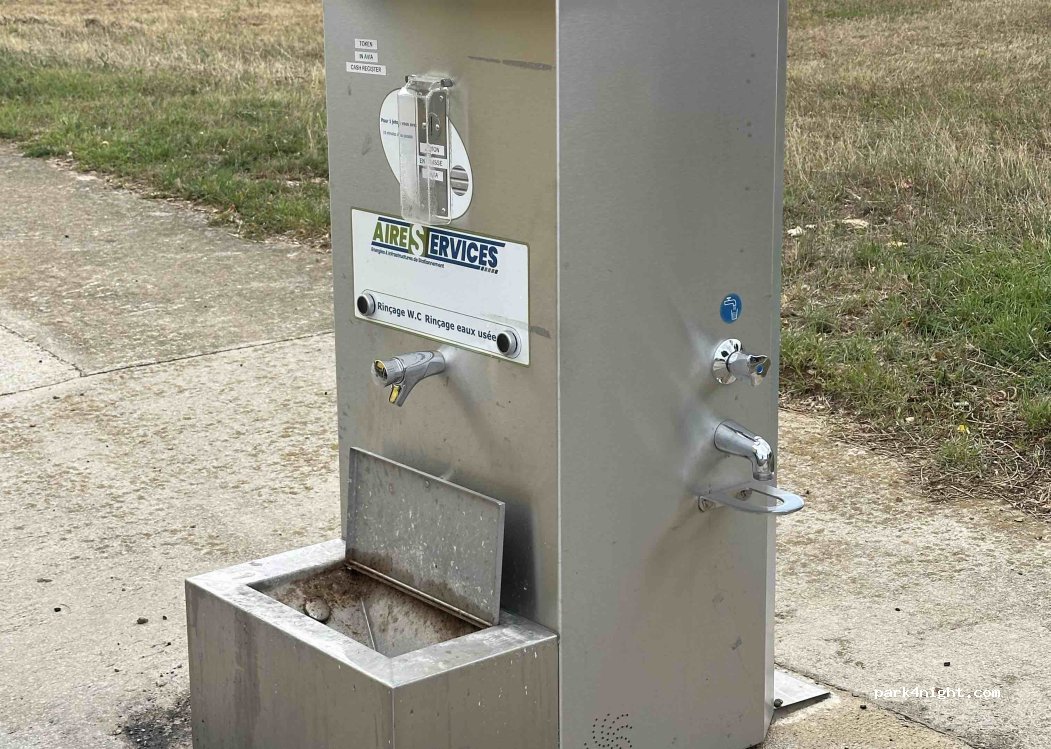 Service station - fresh water, empty black and grey waste. Free tokens available from the Casino shop inside the main building. Water not operational in the winter.