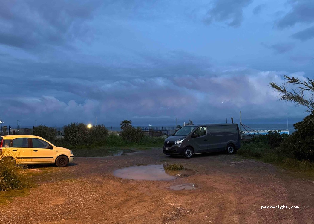 Great parking for a night or two. Close to the beach (10 seconds walking) + beach shower 24/7. 25 mins walking to the city center. Free parking. Not a lot of cars. Great view.