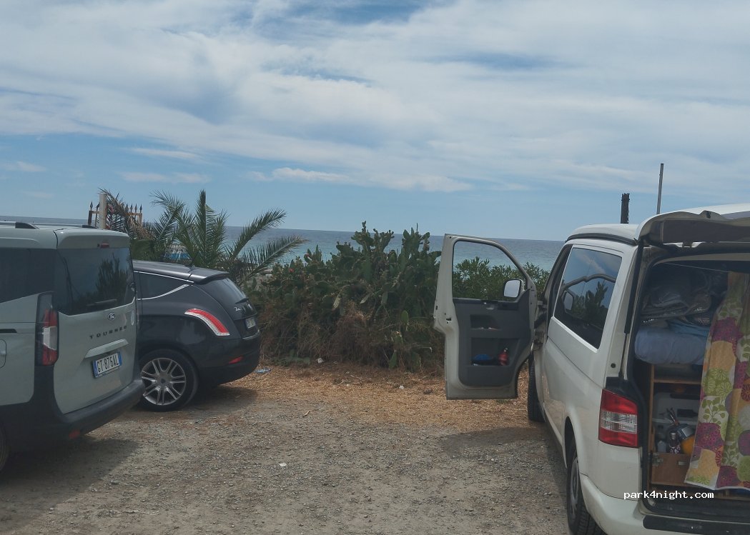 Parkoviště u pláží, v noci volné, přes den hojně využívané místními. Na přespání i parkování zdarma ideální.