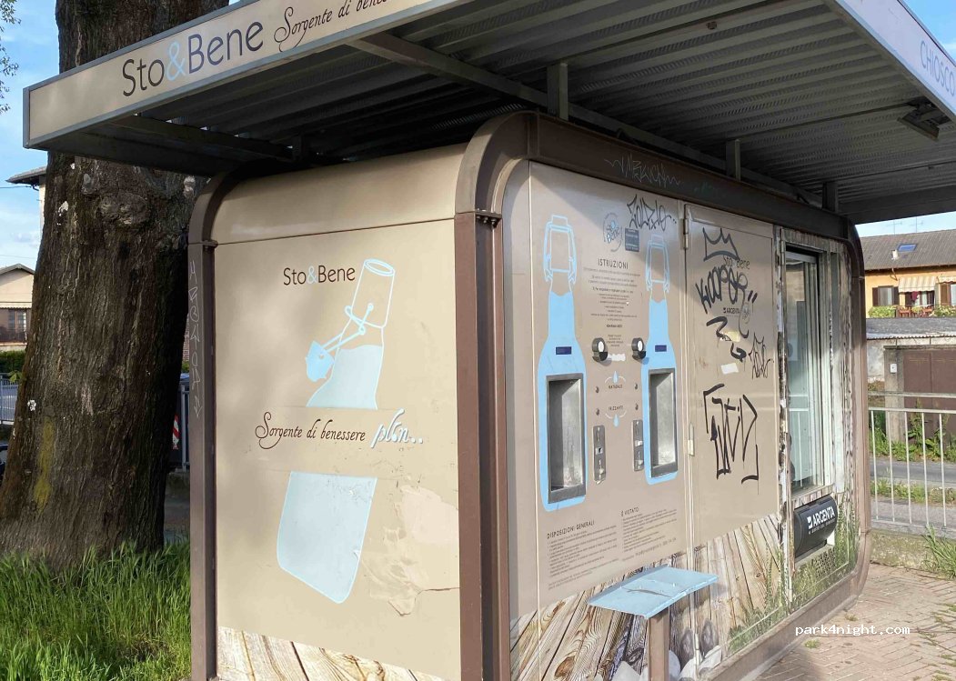 Fontanella di acqua potabile, accessibile dal parcheggio, con distributore anche di acqua naturale frizzante o refrigerata.