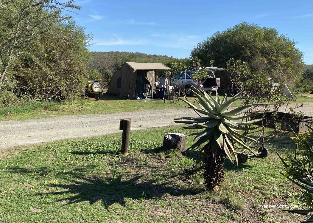 26. Swellendam, Bontebok National Park, Lang Elsie’s Kraal Rest Camp. Magnifique camping dans le parc national. 20 emplacements spacieux sur herbe, entourés de verdure. Chaque emplacement est équipé d'eau, d'électricité, d'un barbecue et d'une poubelle. Sanitaires modernes et propres. Lave-linge et sèche-linge. Eau chaude pour le café/thé, micro-ondes. Espace vaisselle. Le parc doit son nom au bontebok, une espèce rare, dont on compte aujourd'hui 300 spécimens. Il arrive qu'ils broutent dans la verdure du camping. Le prix d'entrée au parc national est à ajouter.