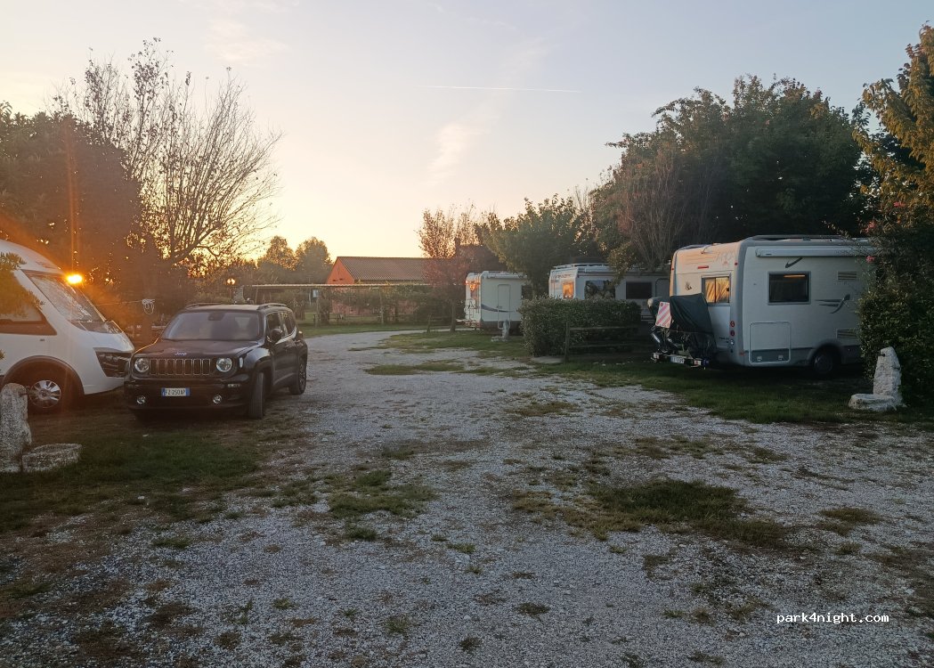 Une dizaine d’emplacements dans une petite ferme typique, tenue par deux vieux fermiers extrêmement sympathiques et souriants. 15 euros l’emplacement, avec eau/douche/electricité ! Endroit simple mais qui vaut le détour pour celui qui veut connaître l’Italie simple et rurale (traversée par les départementales et les moustiques)