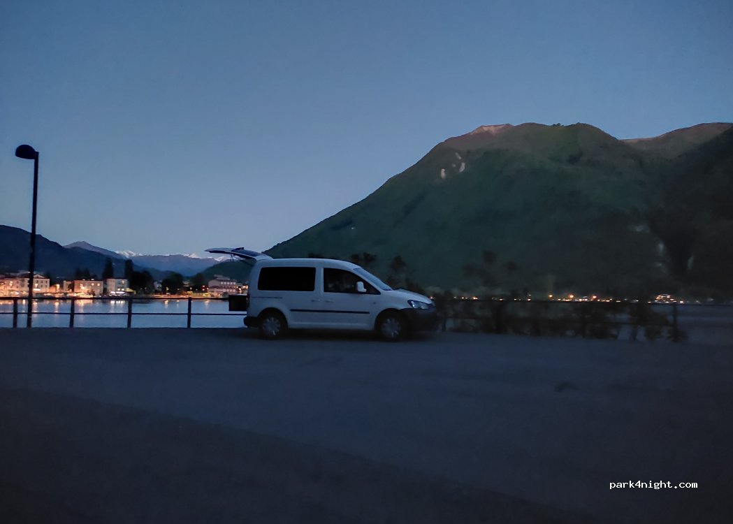 Je crois que vous ne pourrez pas faire plus proche du lac! Nous y avons passé la nuit du samedi soir. Quelques rares voitures passent et des piétons. Il faut faire avec les bruits de la ville. Par contre a l'entrée de cette rue sont présents des panneaux d'interdiction de stationnement H24 sous peine de se faire remorquer le véhicule... Nous n'avons pas eu de soucis mais rien n'est certain...