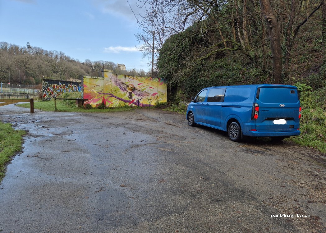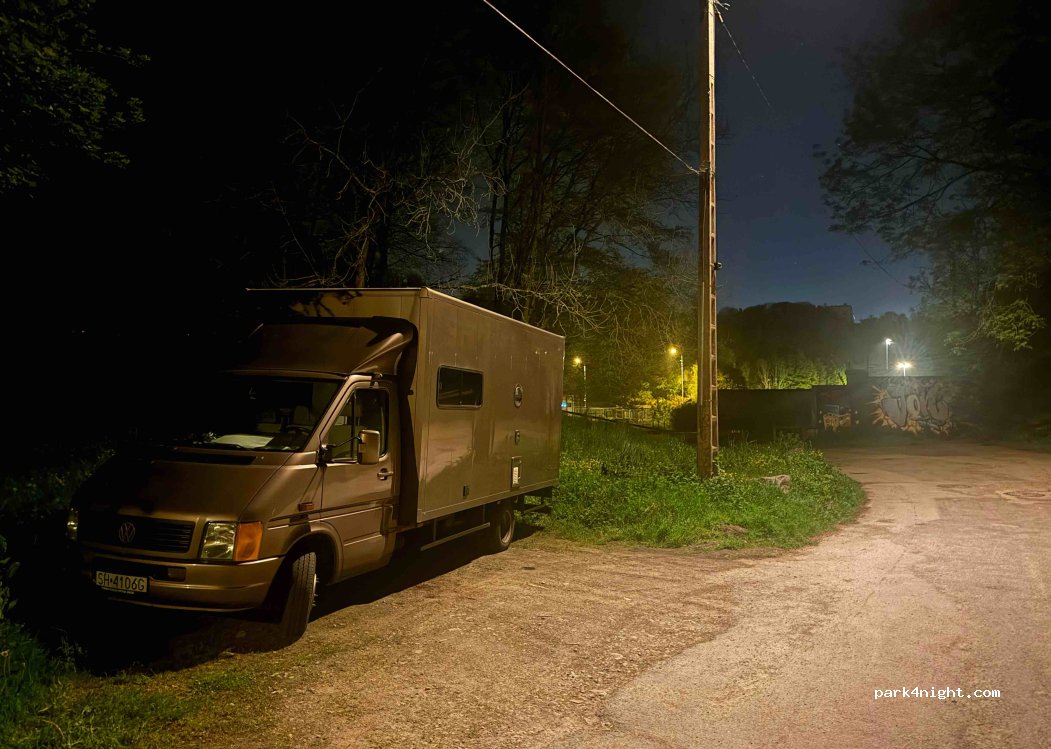 At the end of a dead-end street. The streetlight stays on until 1 a.m., and the nearby road is inaudible. Located by the water. Paths and trails: popular with athletes in the morning. Space for several vehicles.