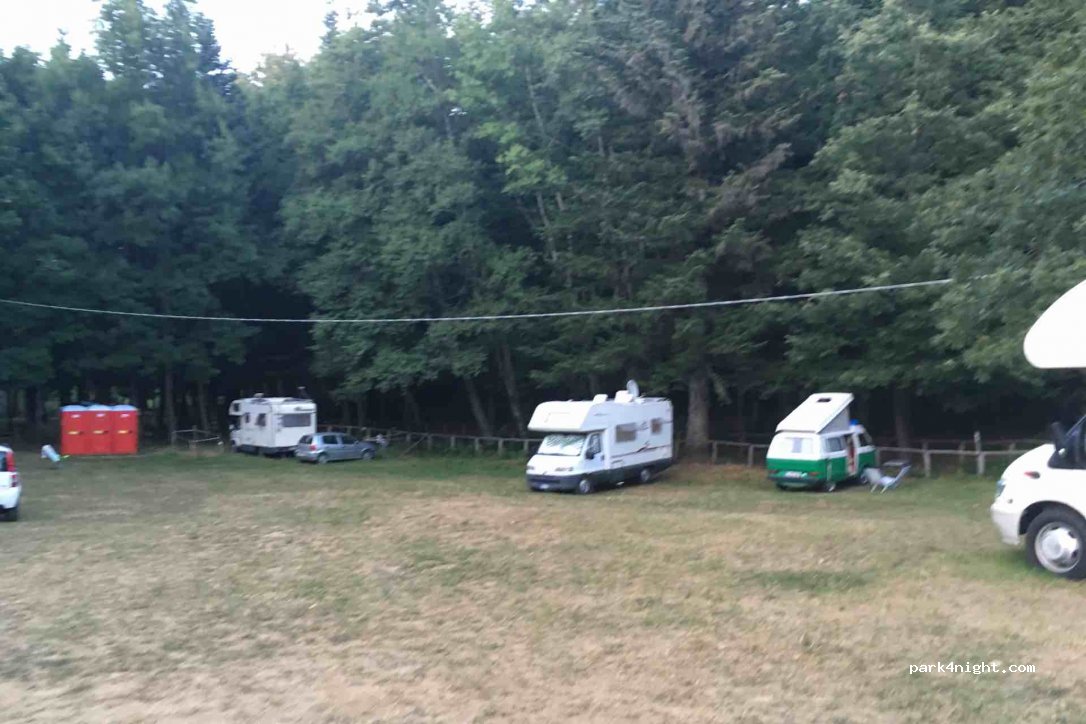 Great if you want to get away from the Italian summer heat. It’s in the mountains with lots of trees for shade. Beautiful spot for hiking and relaxing. 3 portable toilets which are maintained well.