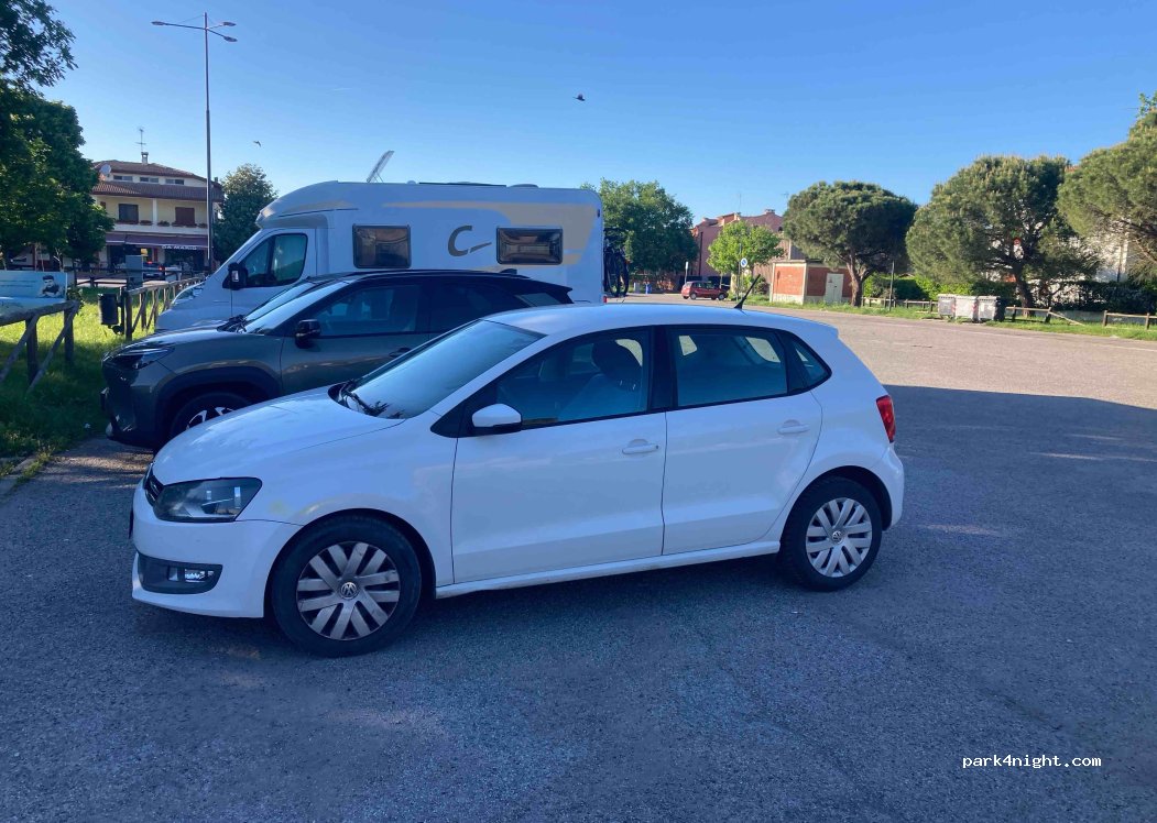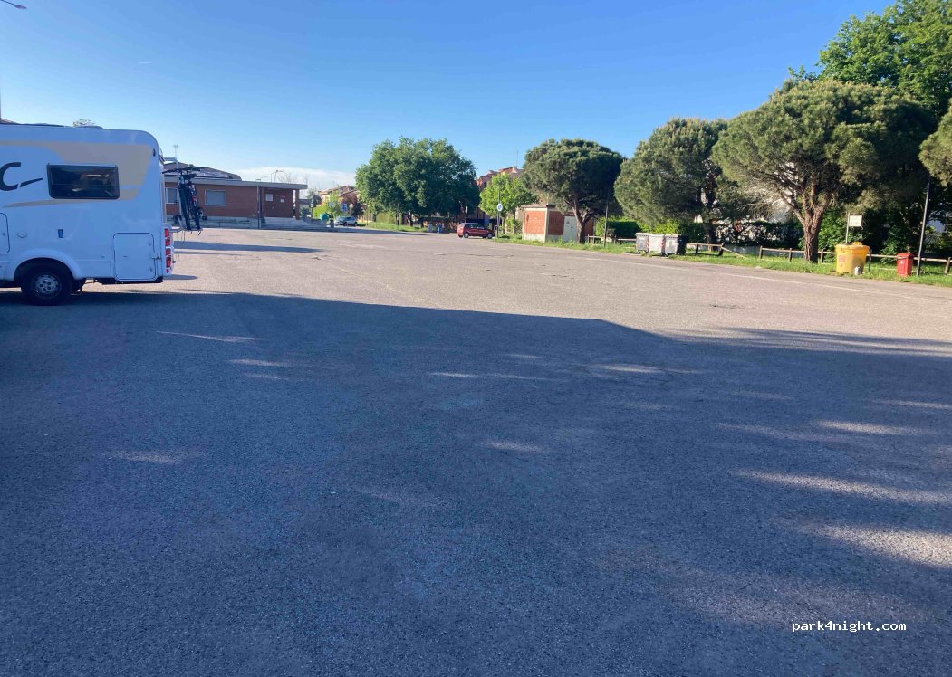 Parcheggio gratuito in un'ampia piazza tranquilla, illuminata di notte, con piccolo parco giochi. Mercoledì mattina vietato per mercato.