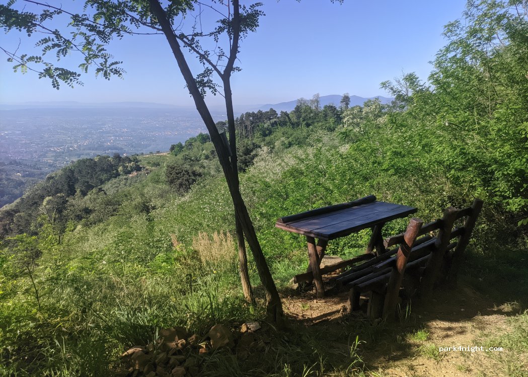 The view is incredible. Great spot for a quiet lunch in nature. It is possible to spend a night here but the area is extremely sloping - expect a 10% slope!