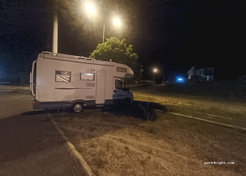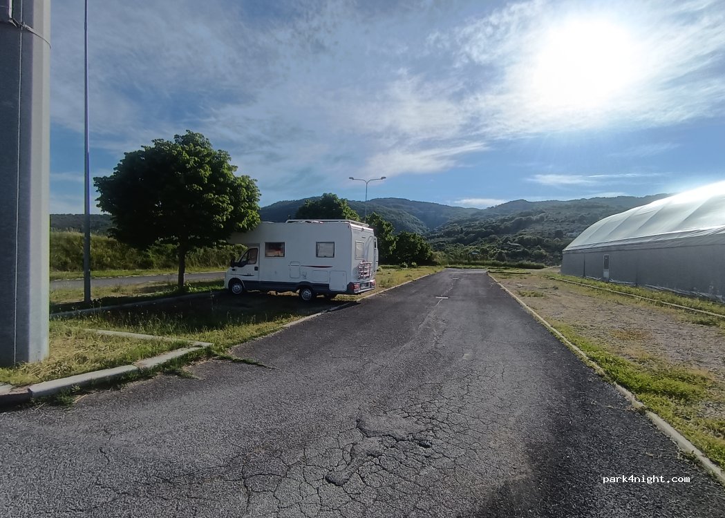 Parking lot of the sports facilities of the village of Poggio Moiano, perfectly leveled and illuminated. No prohibitions, right next to the Carabinieri station. Partly shaded by the still not very tall Lime trees.