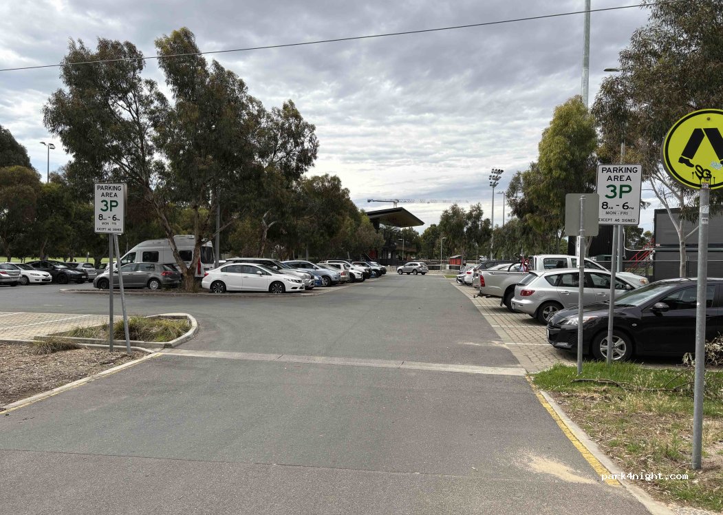 Parked here for one night with no issues, no signs to indicate you can not sleep in your vehicle over night. 3P 8am-6pm Mon-Fri and no restrictions on the weekend, park as long as you like. Noisy as you can hear the main road, but the car park itself is quiet. Public toilets close by but they are not very clean and used needles, so be cautious. Side from that good place to sleep for the night.
