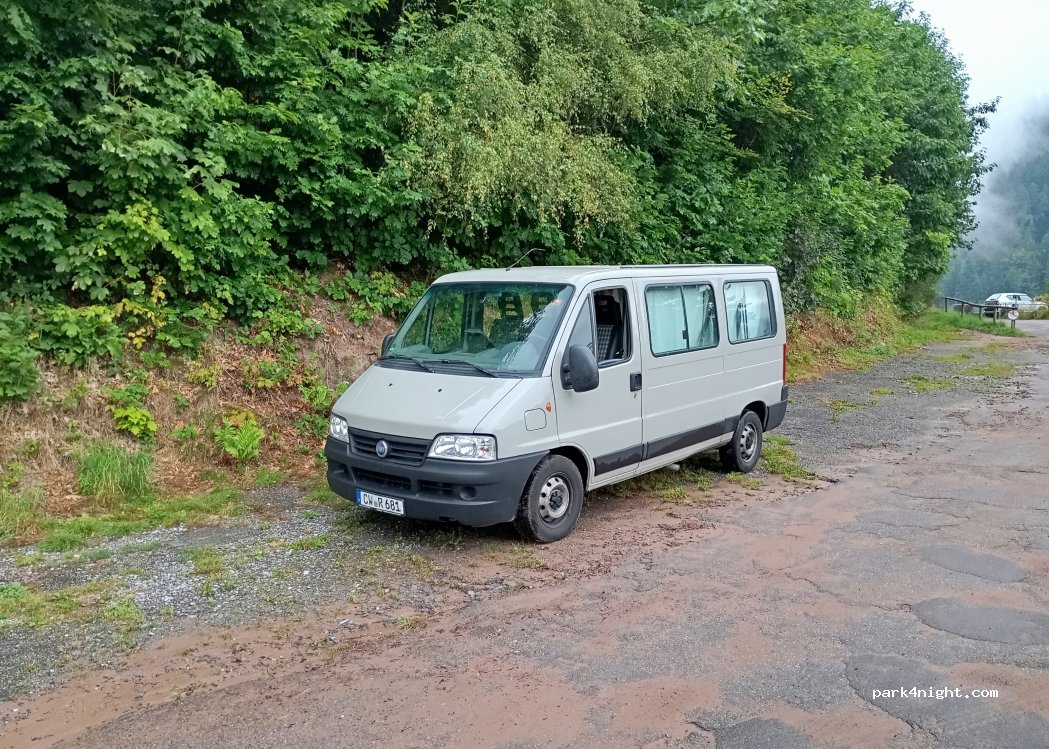 Aparcamiento para senderismo en el borde del bosque con vistas.