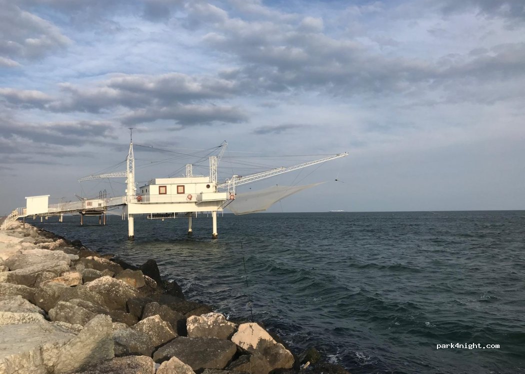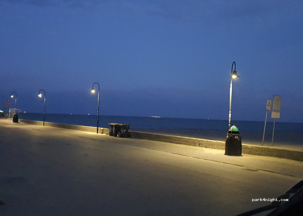 Parcheggio gratuito adiacente al grande parcheggio a pagamento (nei fine settimana) ai margini di una spiaggia molto grande, è un molo con fondo cieco e lontano dai bar quindi più tranquillo