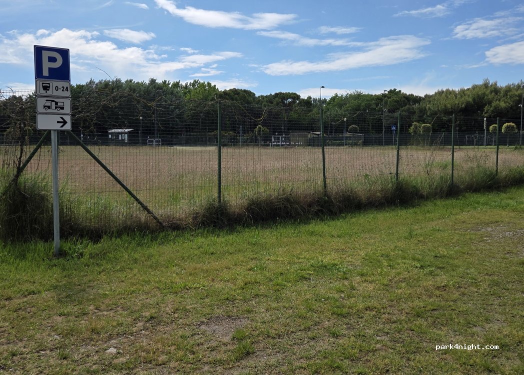 Parcheggio non parcellizzato riservato ai camper, su un prato vicino a una strada laterale, per 4-6 camper.