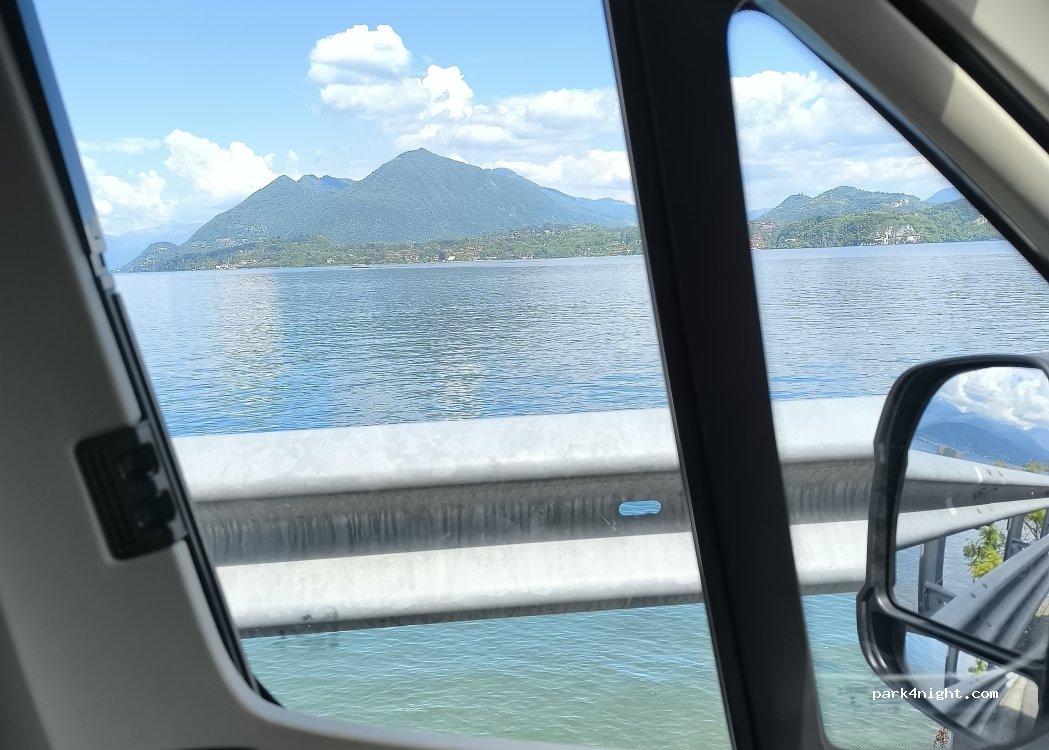 Parcheggio a bordo strada per pausa pranzo o anche passare la notte. nessun divieto. vista lago.