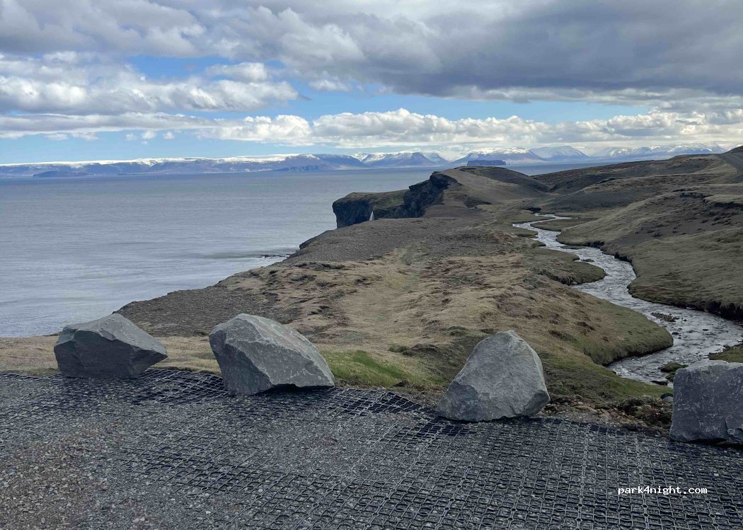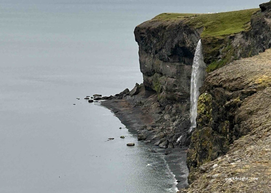 Absolument fantastique, terrain stable, possiblement venteux. Personne aux alentours. Ne pas provoquer les oiseaux qui défendent leur nid et territoire sur la falaise. Sur la gauche, une belle cascade se verse directement dans la mer. Passage d’un fermier avant la nuit qui cherchait des moutons égarés.