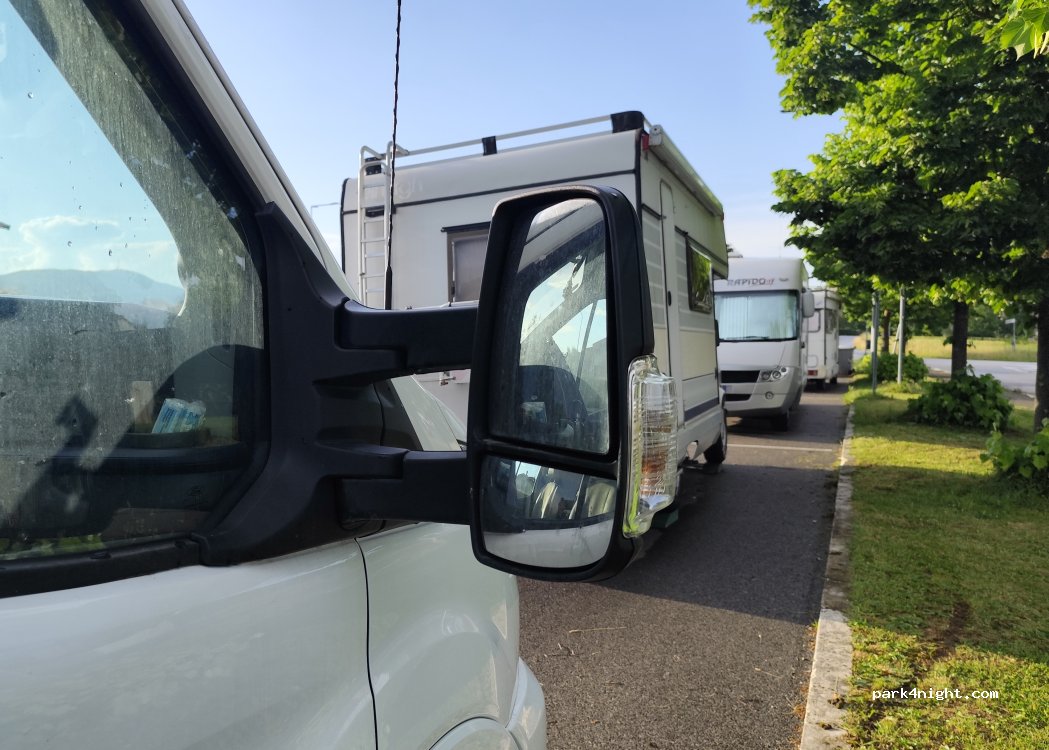 Parcheggio gratuito in zona residenziale, 5 stalli riservati ai camper. Leggerissima pendenza. Silenzioso di notte. Ottimo per una notte di passaggio. Illuminato. Presenti bidoni della differenziata.