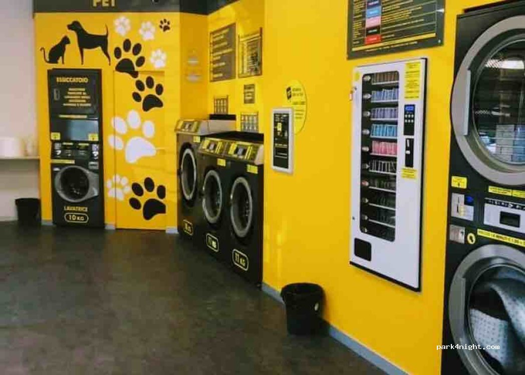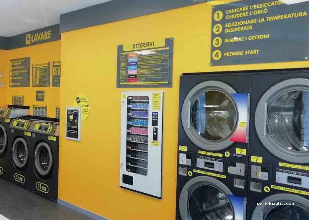 Ottima lavanderia a gettoni con parcheggio gratuito adiacente. E diversi parcheggi nelle vicinanze. La lavanderia è dotata di lavatrici e asciugatrici e persino di un angolo per lavare gli effetti personali dei nostri animali. Distributore di detersivo. Molto pulita e facile da usare, la consiglio.