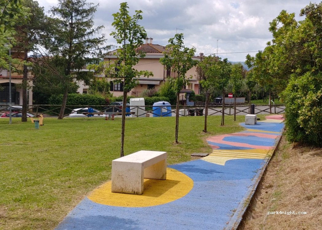Kleiner Parkplatz ganz in der Nähe eines Spielplatzes. Einheimische stellen ihre Wohnmobile hier ab. Relativ ruhig. Man hört die Straße etwas und Kirchenglocken. Platz ist eben und hat schattige Flächen. Insgesamt standen wir sicher und angenehm. Eine Tabaccheria mit Brot, Gemüse, Obst ist fußläufig erreichbar. Ebenso eine Bar, eine Pizzeria (So, Mo geschlossen), eine Apotheke.